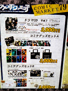 開催中のコミックマーケット79での追加お知らせです。 明日、最終日の無料配布冊子については、アンケート用紙切れのため回答無しで皆さまにお配りすることになりました。冊子自体は在庫ある限りとなりますので、ご了承のほどお願いいたします。 ご回答頂けた皆さま、ありがとうございました!! 頂いたご意見を参考に開発に励みます! パカ子は昨日のみブースにて働いておりましたが、人の数に圧倒されてしまいました……! 直に応援いただけている皆さまとお会いできる貴重な経験をさせて頂きました。 画像は、ブースの価格表とパカ子(左下)です。 また、ドラマCDvol.1の感想も徐々にメールフォームから頂いています。 熱く!甘く!な一枚となっています! 一般流通は1月28日より全国のアニメイトさんや、アニメ系CDショップなどで始まりますのでよろしくお願いします! 以上、アル・パカ子より今年最後のお知らせでした! 来年もどうぞよろしくお願い致します! では、Buon anno a tutti!(みなさん良いお年を!) |